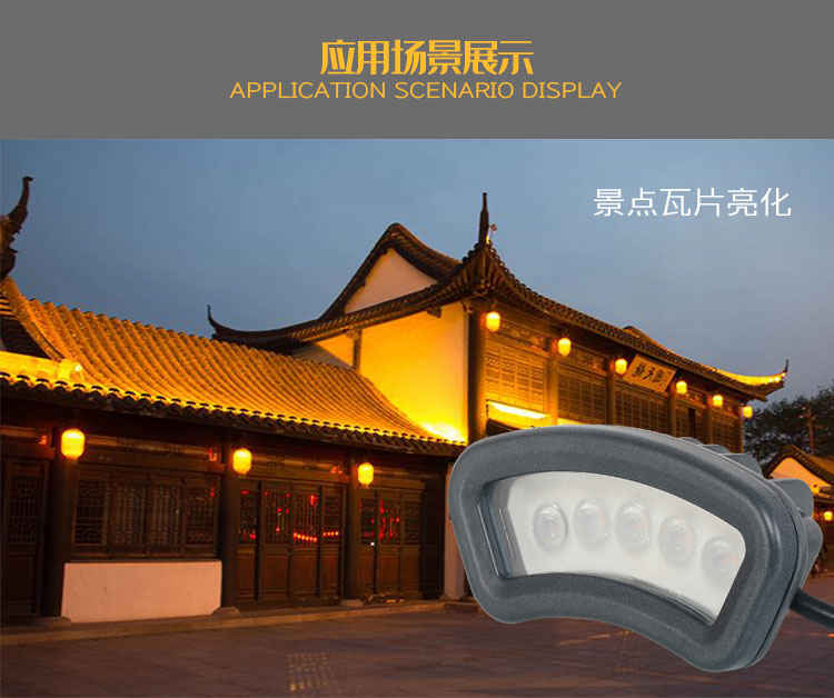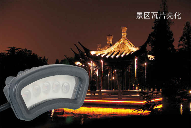 瓦楞灯专区 主页 > 产品中心 > 瓦楞灯专区 > led瓦楞灯月牙灯屋顶凉亭古建筑门楼投光射灯 产品名称:LED瓦楞灯 产品品牌:奥光达AogdA 产品型号:AogdA-JGLHWLD02 产品功率:3W;5W;6W; 产品颜色:正白;暖白;RGB七彩; 产品控制:外控; 产品材质:压铸铝+钢化玻璃; 额定电压:AC220V;DC24V; 适用范围:广场、公园、街头、广告,古建筑、观光亭等照明。