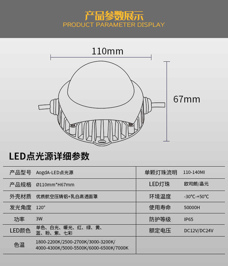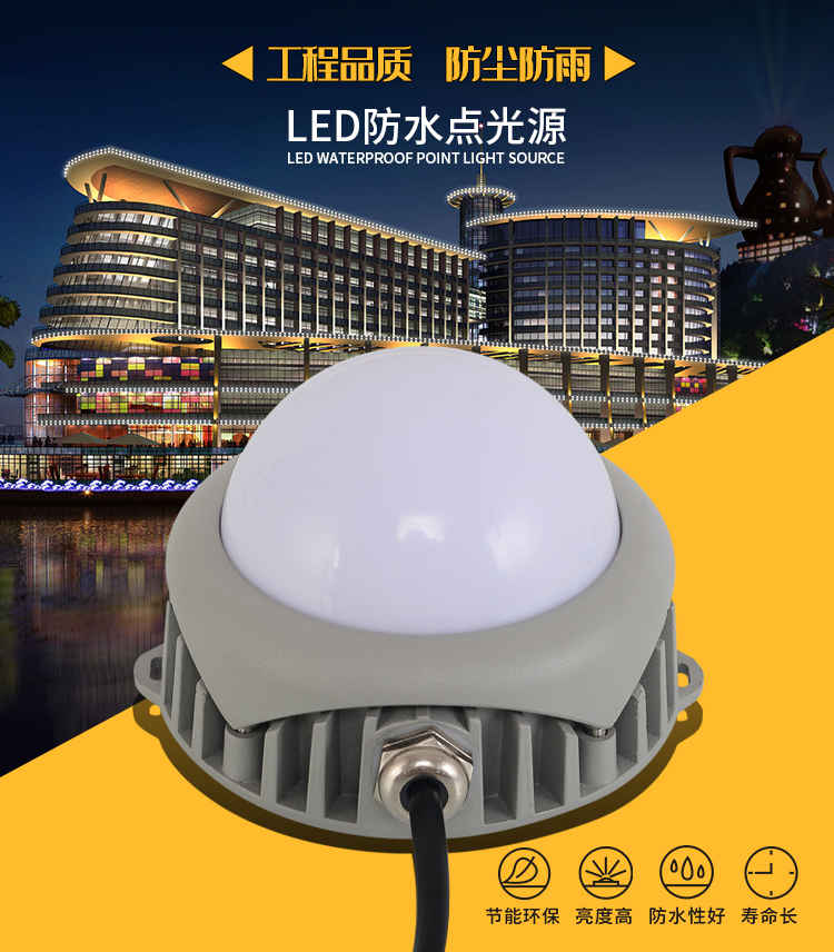 点光源专区 主页 > 产品中心 > 点光源专区 > 点光源led外控全彩单色防水七彩跑马灯广告招牌大楼亮化 产品名称:LED点光源 产品品牌:忠信照明 产品型号:ZXZM-JGLH-XTD03 产品规格:1W:2W;3W;5W;7W 产品颜色:正白;暖白;红光;黄光;蓝光;绿光;紫光;RGB七彩; 额定电压:AC220V;DC24V; 适用范围:户外;桥梁;广告;工厂;墙体亮化;