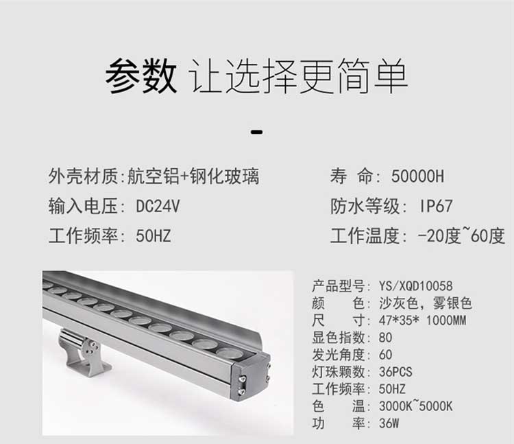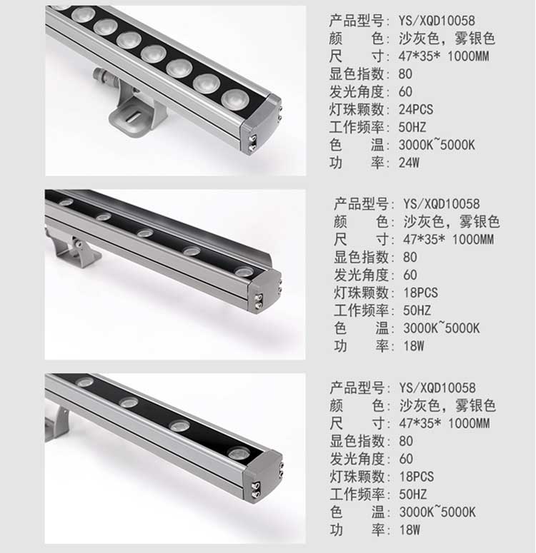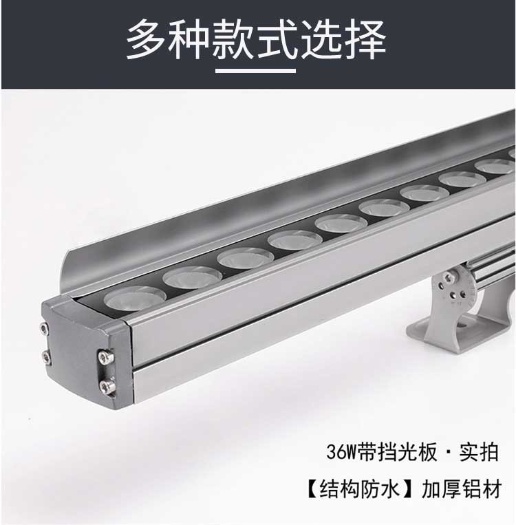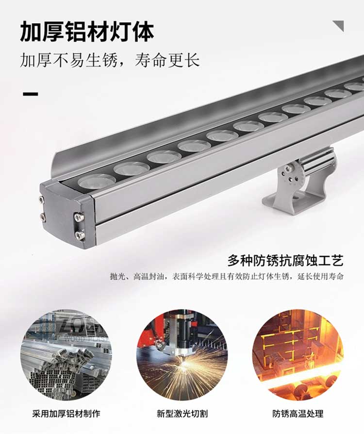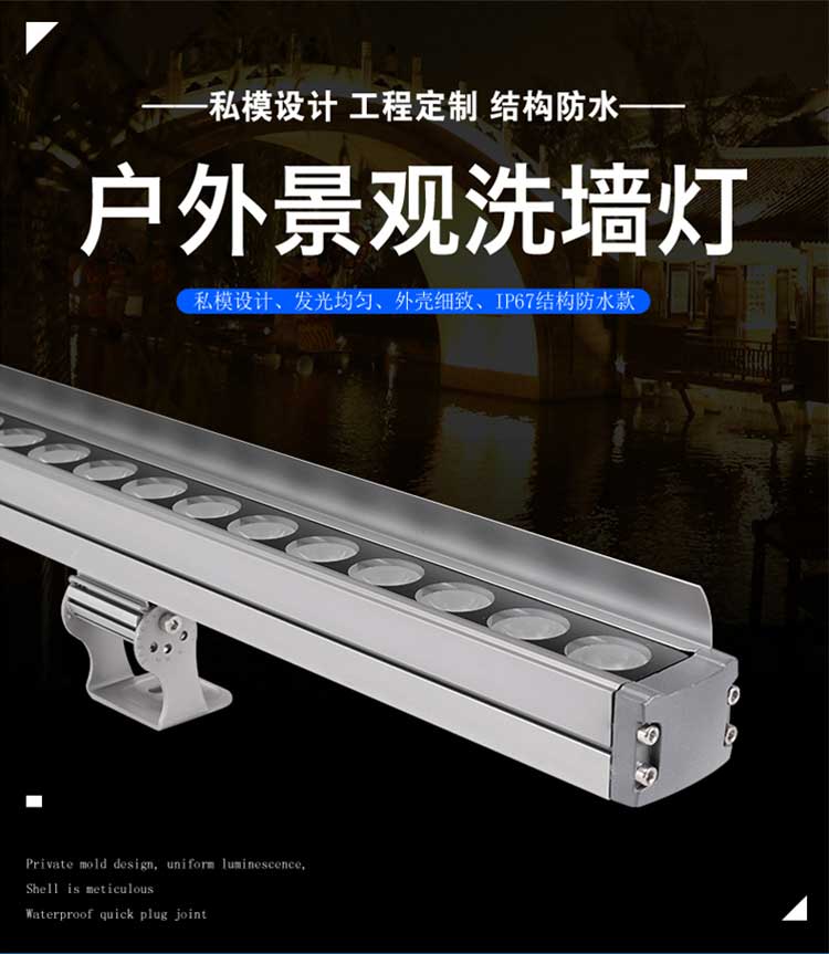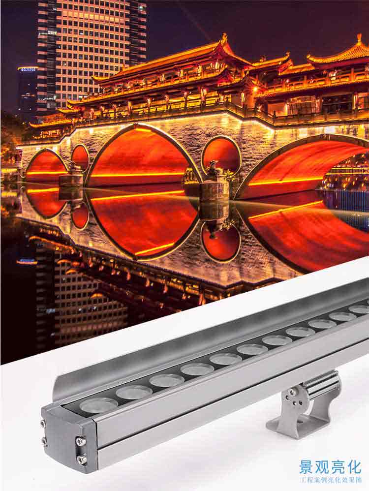 洗墙灯专区 主页 > 产品中心 > 洗墙灯专区 > 厂家直销 防水线条灯低压24V户外楼体轮廓灯新款 LED洗墙灯 产品名称:LED洗墙灯 产品品牌:忠信照明ZXZM 产品型号:ZXZM-JGLH-XQD04 产品规格:9W:长度为0.5米;18W:长度为1米; 24W:长度为1米;36W:长度为1米; 产品功率:9W;18W;24W;36W;(可根据客人要求定做) 产品颜色:正白;暖白;红光;黄光;蓝光;绿光;紫光;RGB七彩; 产品控制:可以做内控;可以做外控; 额定电压:AC220V;DC24V; 适用范围:户外;桥梁;广告;工厂;墙体亮化;
