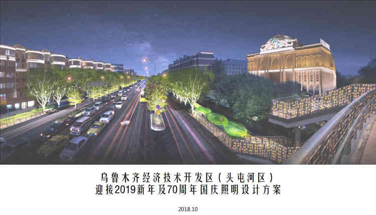 公司经典案列 主页 > 新闻中心 > 公司经典案列 > 乌鲁木齐头屯河区迎接2019新年及70周年国庆照明设计方案 日期:2019/5/24 9:55:19 阅读 3474 乌鲁木齐经济技术开发区(头屯河区) 迎接2019新年及70周年国庆照明设计方案 2018.10