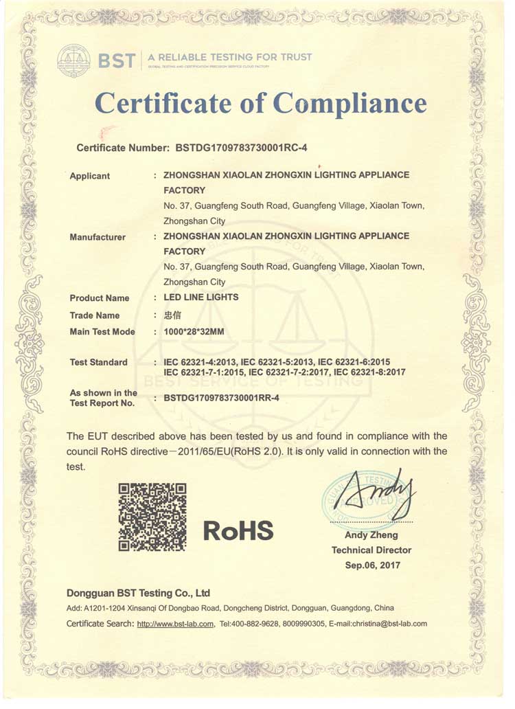 公司新闻 主页 > 新闻中心 > 公司新闻 > 忠信照明资质与实力 日期:2019/8/23 11:50:19 阅读 3388 中山市忠信照明电器有限公司 公司地址:广东省中山市小榄镇绩西中心南路51号四楼 服务热线:400-118-0818; 官方网站:http://www.zeyongled.com/ 诚信通店:https://13318413658.1688.com 我们的资质与实力;